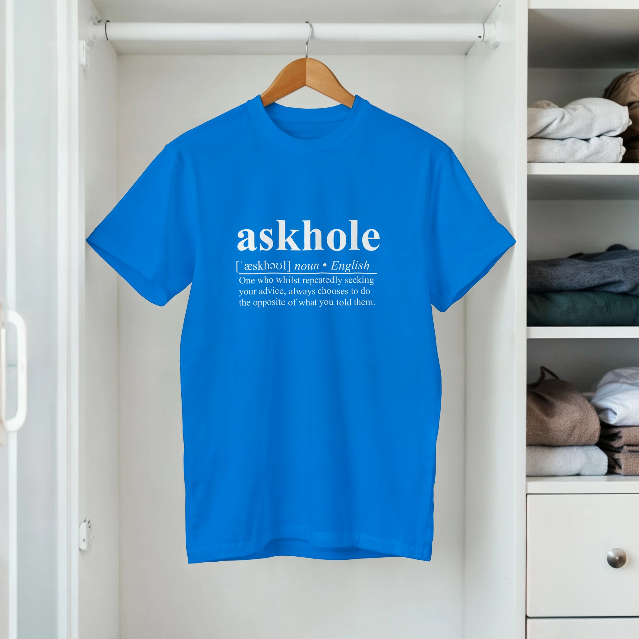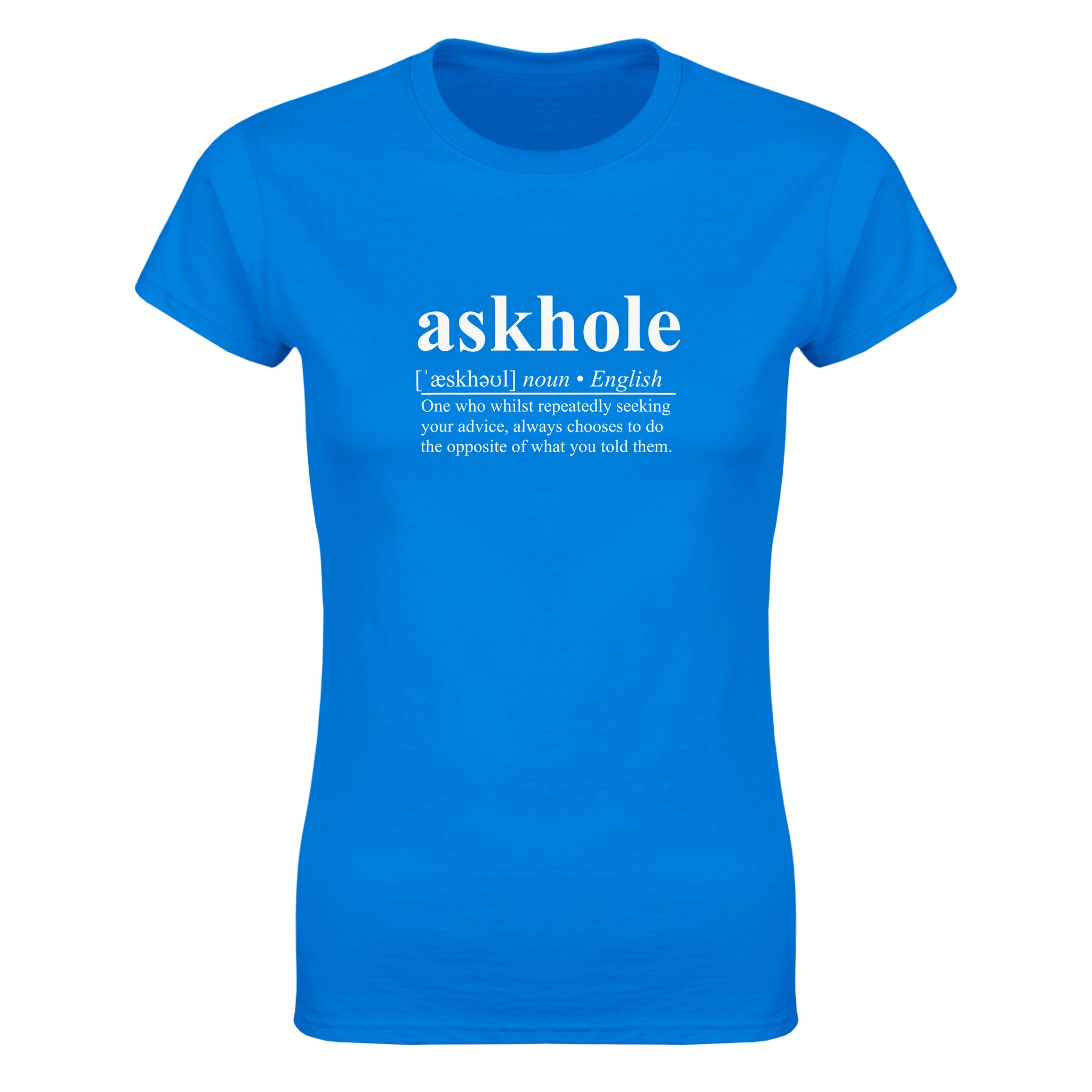 Fed up having your golden advice being ignored? Make it clear to even the stupidest no-nothing with our Askhole dictionary definition t-shirt. You could even buy them one, though you may have to teach them to read first.