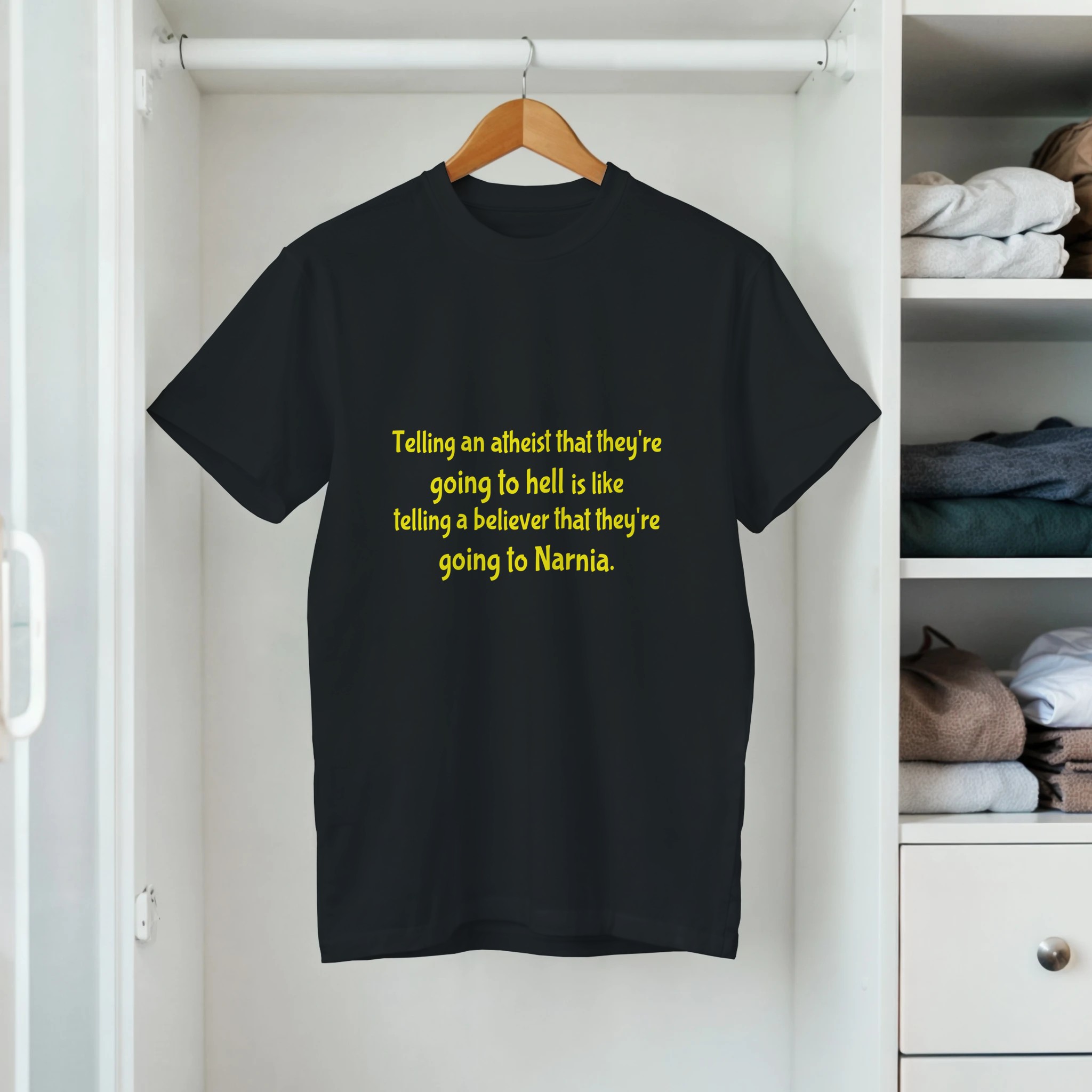 Given this common response to revealing your atheism, let this t-shirt explain your indifference.